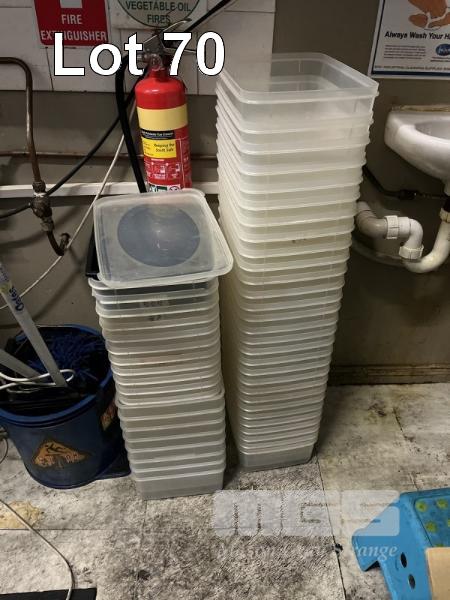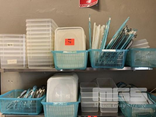 LARGE QUANTITY FOOD STORAGE CONTAINERS WITH LIDS, ASSORTED SIZES