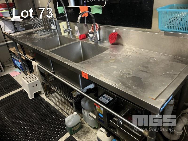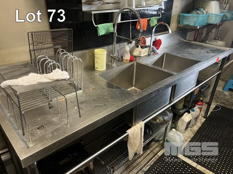 LARGE TWIN BOWL STAINLESS STEEL SINK WITH SPLASH BACK, FLEXI HOSE TAP & MIXER TAP, 2600 x 660 x 1130mm (H)
