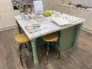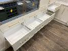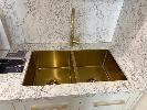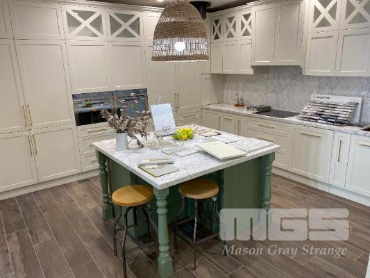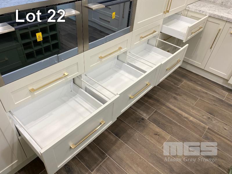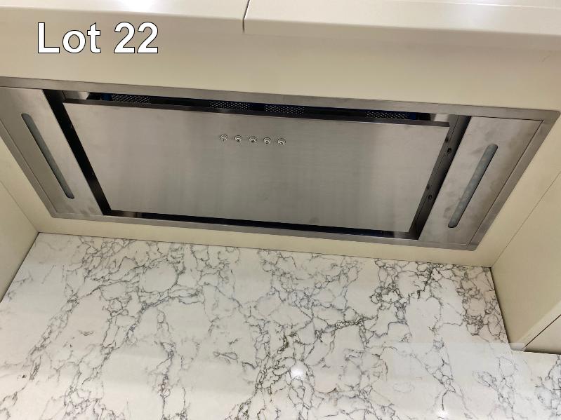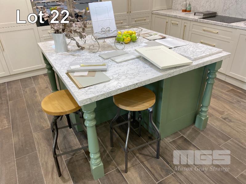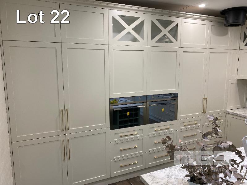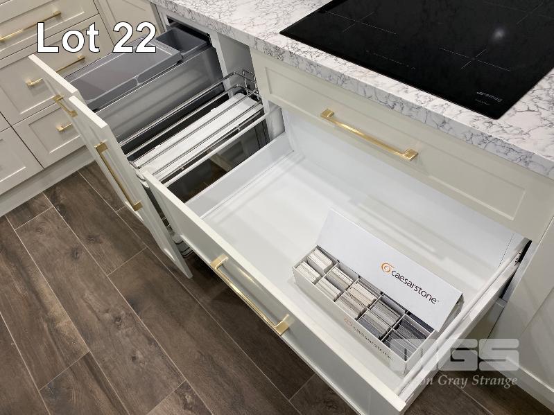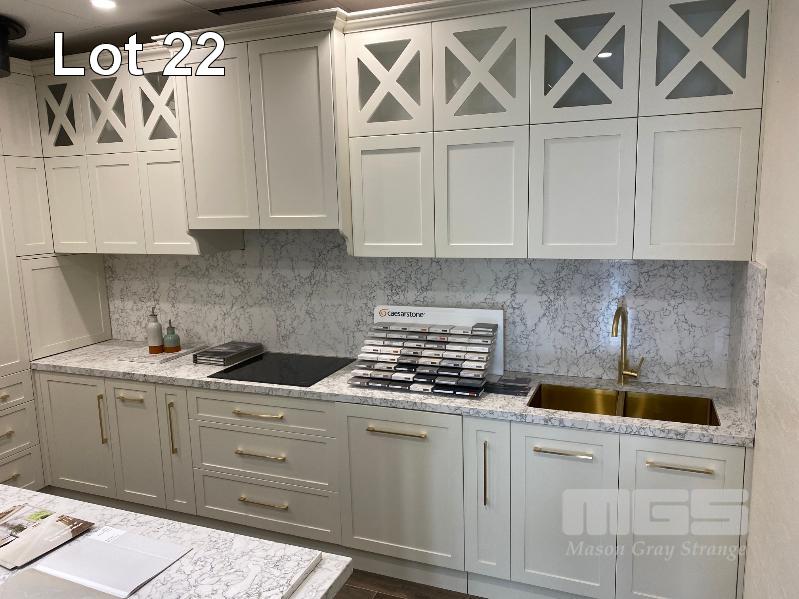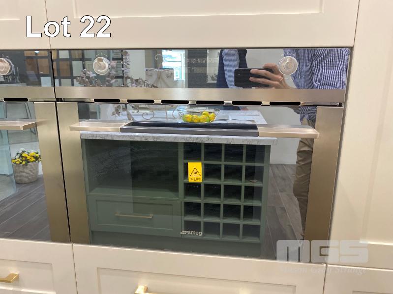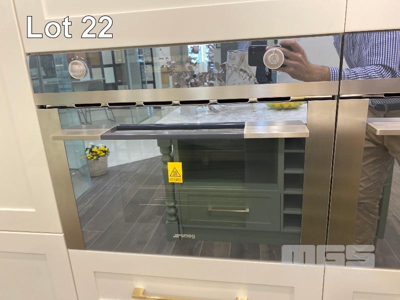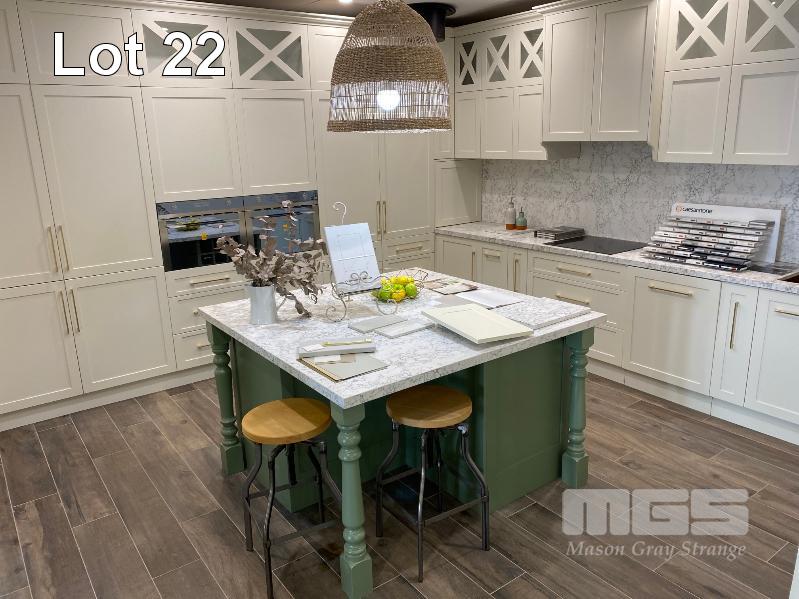 HAMPTON SHOW ROOM KITCHEN CAESAR STONE COUNTER TOPS & ISLAND WITH 2 x RUSTIC BAR STOOLS 19 x STORAGE DRAWERS, 11 x STORAGE CUPBOARDS SMEG STEAM OVEN, MODEL: SCA45VC2, 240v SMEG CONVECTION MICROWAVE WITH GRILL, MODEL: SCA45MC2 SMEG INDUCTION STOVE, 4 BURNER, 240v GLEN DIMPLEX UNDERMOUNT RANGEHOOD, MODEL UC75, 240v HOME APPLIANCES BUILT IN DISHWASHER, MODEL: FIDWB14, 240v TWIN BOWL GOLD SINK WITH MIXER TAP (BUILT IN FRIDGE NOT INCLUDED)