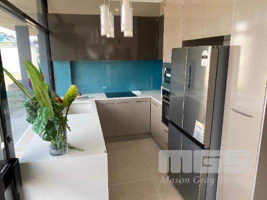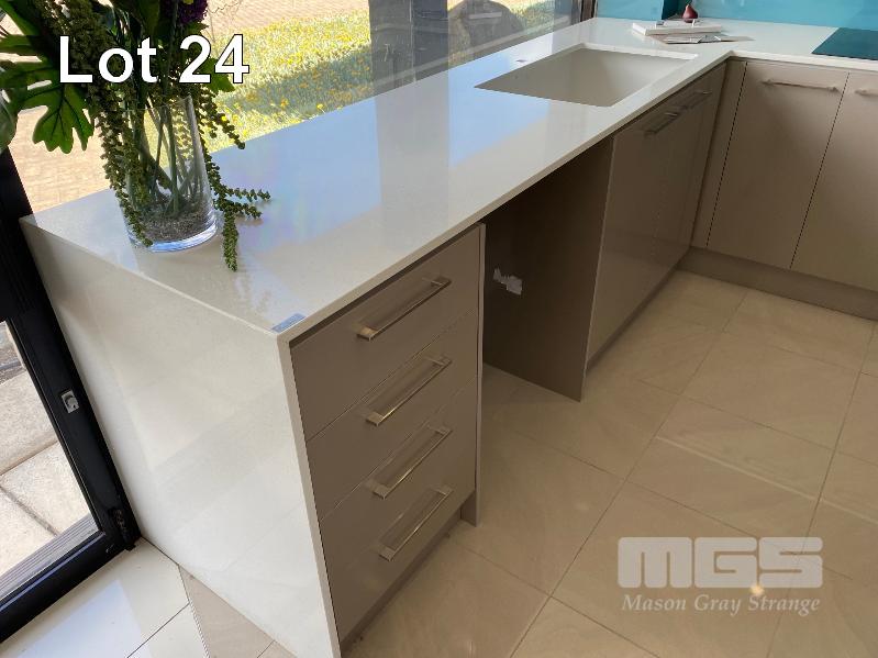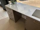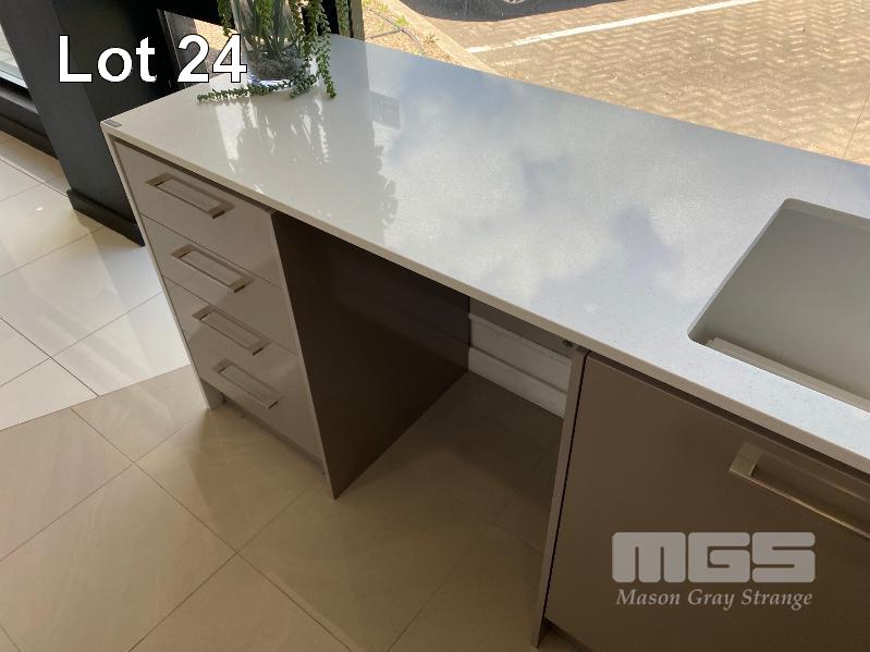 SHOW ROOM KITCHEN CAESAR STONE COUNTER TOPS 6 x DRAWER STORAGE, SLIDE OUT PANTRY, 9 x CUPBOARDS BAUMATIC COMBINATION MICROWAVE GRILL, MODEL: BAMG28TK, 1450w, 240v IAG 5 FUCTION COMBINATION OVEN, MODEL: IAO5, 240v SCHOTT CERAN INDUCTION STOVE, 4 BURNER, 240v THINK RANGE HOOD UNDER MOUNT MODEL: SY-6008B-P2-C-X, 240v (AKAI FRIDGE NOT INCLUDED)