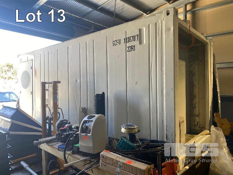 20' CONTAINER, INSULATED & AIR-CONDITIONED, INCLUDES RACKS, MITSUBISHI SPLIT SYSTEM A/C FLURO LIGHTING, GPO'S, SUB BOARD, ALUMINIUM CHECKER PLATE FLOOR S/S WALLS.