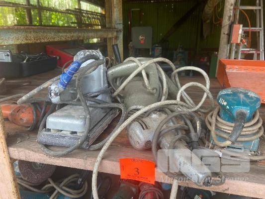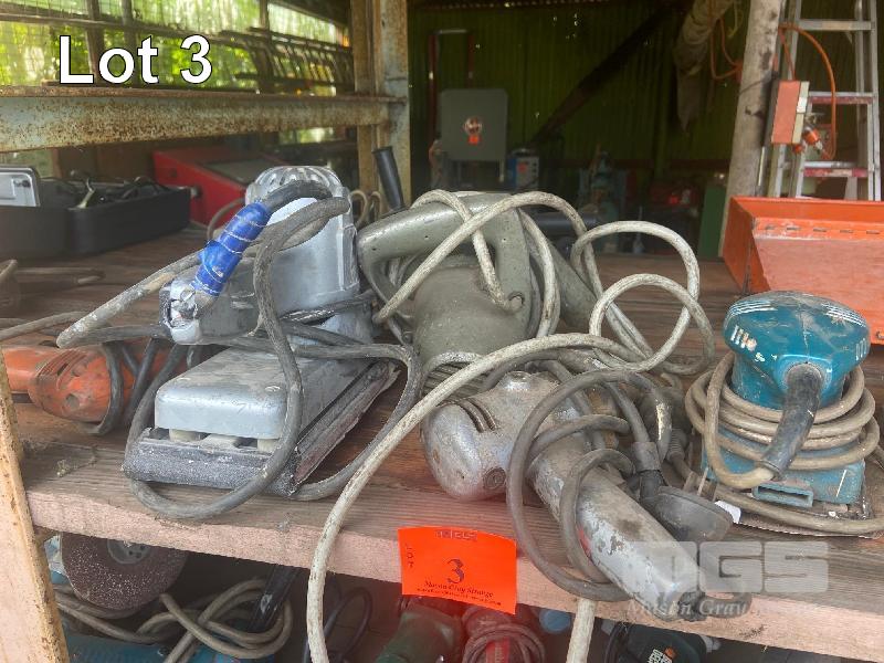 5 x ASSORTED POWER TOOLS INCLUDING 2 x HAND DRILLS, 2 x SANDERS & 1 x BLOWER, 240V