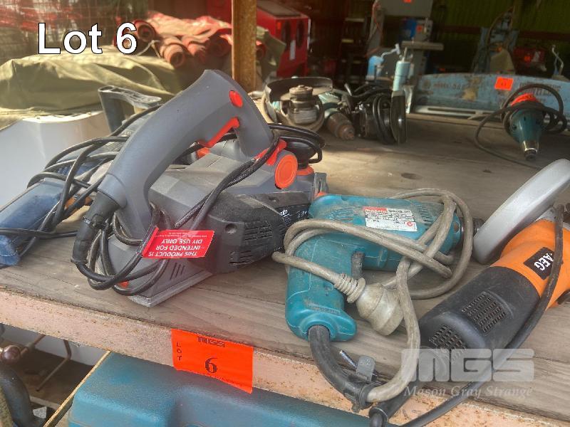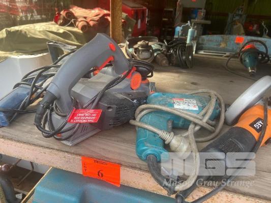 RYOBI ERO750VK SANDER, OZITO 80mm PLANER, MAKITA HAND DRILL & AEG ANGLE GRINDER, 125mm 240V 4 ITEMS