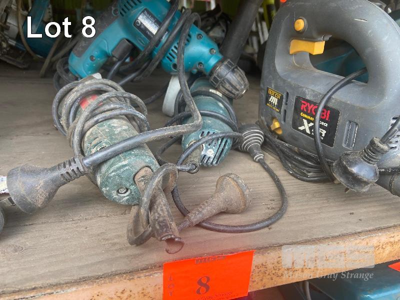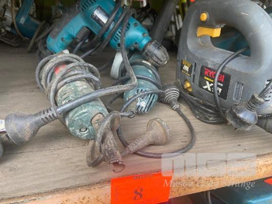 RYOBI JIGSAW, MAKITA KEYLESS CHUCK HAND DRILL, 10mm, B&D ANGLE GRINDER, 115mm & METABO ANGLE GRINDER, 100mm 240V 4 ITEMS