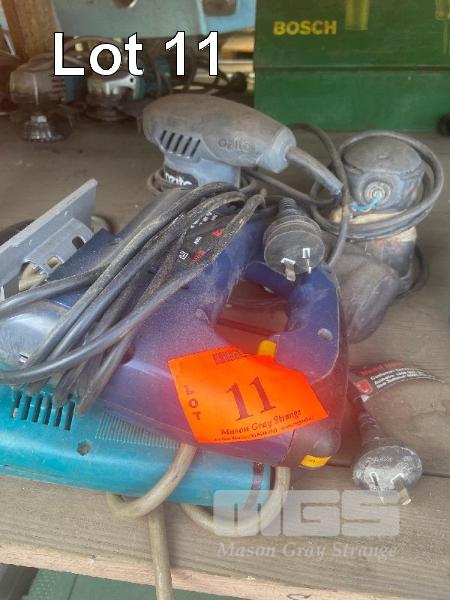 RYOBI JIGSAW, 2 x ORBITAL SANDERS & 1 x MAKITA HAND DRILL 240V 4 ITEMS
