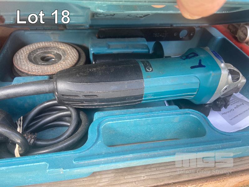 ANGLE GRINDER, MAKITA 240V, IN CASE & MAKITA 240V KEYLESS CHUCK HAND DRILL,
