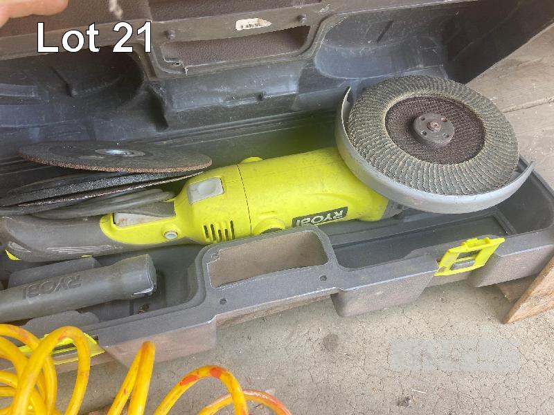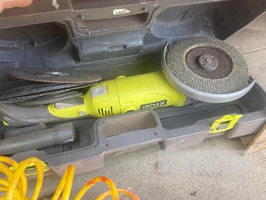 ANGLE GRINDER, RYOBI 7", 240V & SMALL INGERSOLL RAND PORTABLE AIR COMPRESSOR