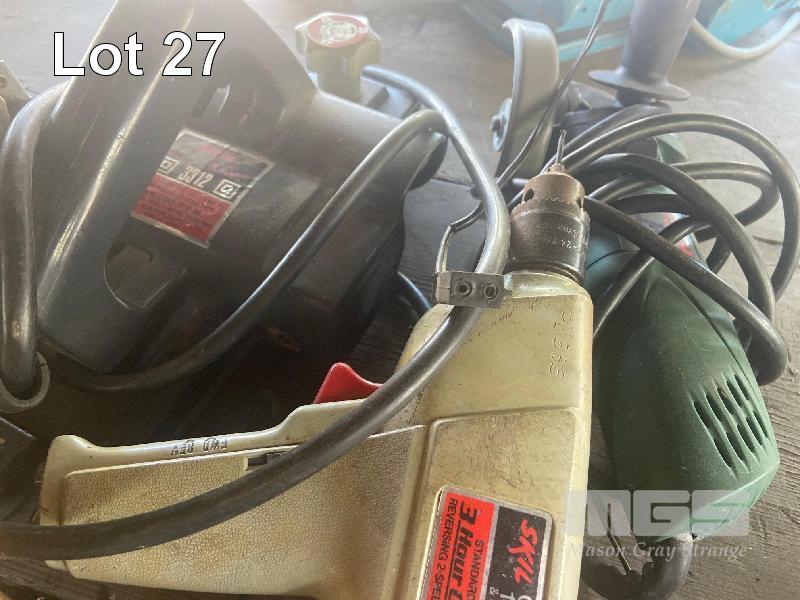 MAKITA CIRCULAR SAW, 7", SKIL PLANER, 80mm, 2 x ANGLE GRINDERS, 125m, 1 x CORDLESS SKILL DRILL, 10mm & CHARGER 240V 5 ITEMS