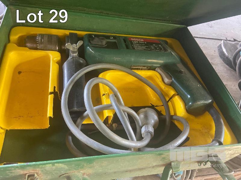 BOSCH CSB-5002 IMPACT DRILL IN CASE, BOSCH ANGLE GRINDER, 7" & HITACHI ANGLE GRINDER, 125mm 240V 3 ITEMS