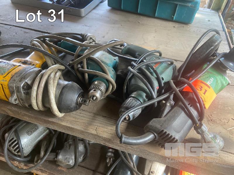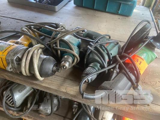 1/2" IMPACT GUN, BOSCH REV/FWD VARIABLE HAND DRILL, HITACHI ANGLE GRINDER, 125mm & MAKITA HAND DRILL, 10mm 240V 4 ITEMS