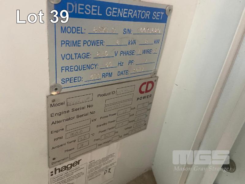 CD GENSET, 8KVA, 3 CYLINDER DIESEL, 240V SINGLE PHASE, OUTLETS 415V SINGLE PHASE OUTLETS AS NEW CONDITION LOW HOURS, YANMAR 13.8kw MOTOR