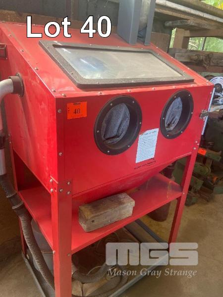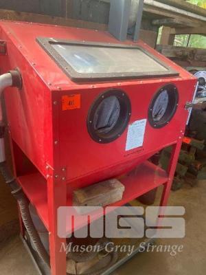 SAND BLASTING CABINET, MILLERS FALLS 900 (W) x 560mm (D) WITH VACUUM RETURN, MOBILE BASE