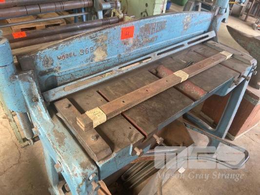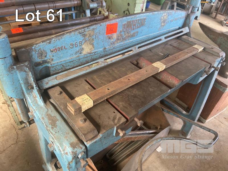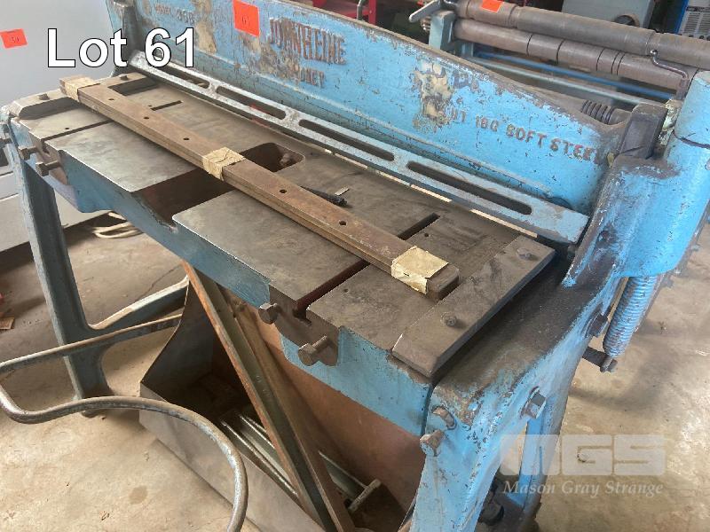 TREADLE GUILLOTINE, JOHN HEINE MOD: 36B CAPACITY: 18G SOFT STEEL SHEET WITH SPARE BLADE SET, BACK GAUGE & FRONT REST BARS