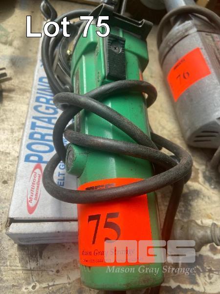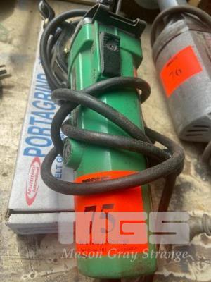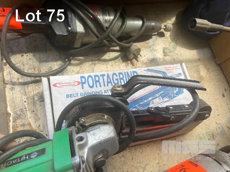 ANGLE GRINDER, HITACHI 100mm FITTED WITH PORT-A-GRIND LINISHING BELT ATTACHMENT