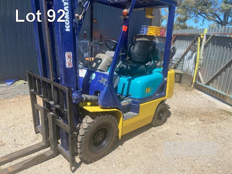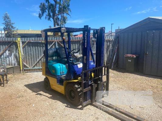 FORKLIFT, KOMATSU 18 MOD: FG18T-16 S/NO: 61660 2 STAGE CONTAINER ENTRY MAST PETROL OPTIONAL LPG., PNEUMATIC TYRES 3m LIFT 5522 HRS 1,570kg CAPACITY