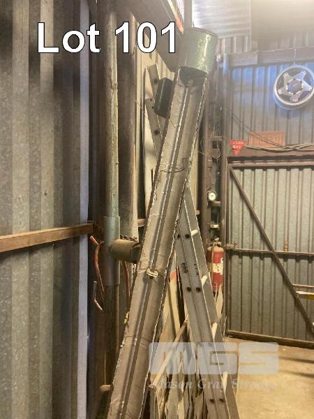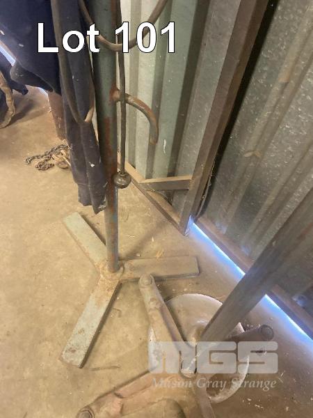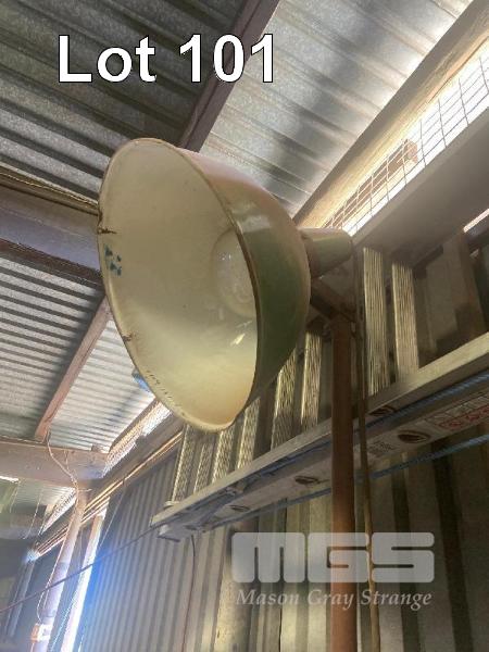 2 x MOBILE ELEMENT HEATERS, 240V ON ADJUSTABLE STANDS & WORKLIGHT ON STAND