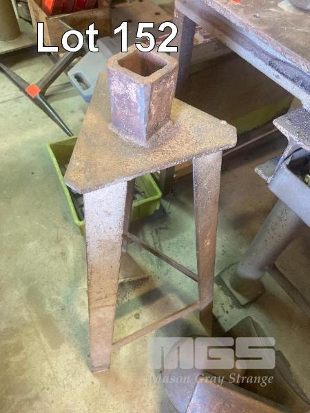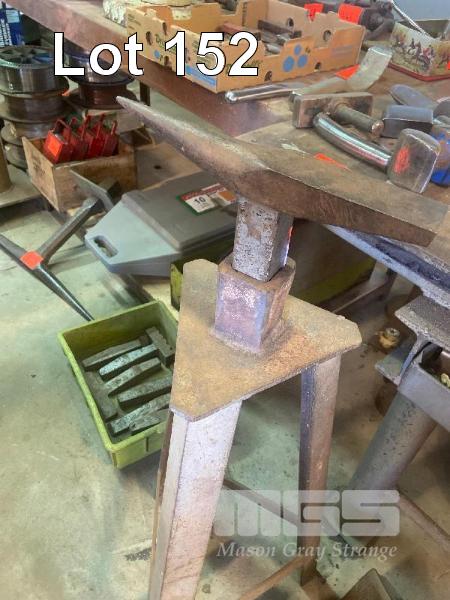 BLACKSMITHS WORK STAND & 8 x ANVILS.