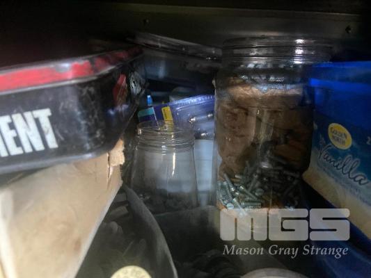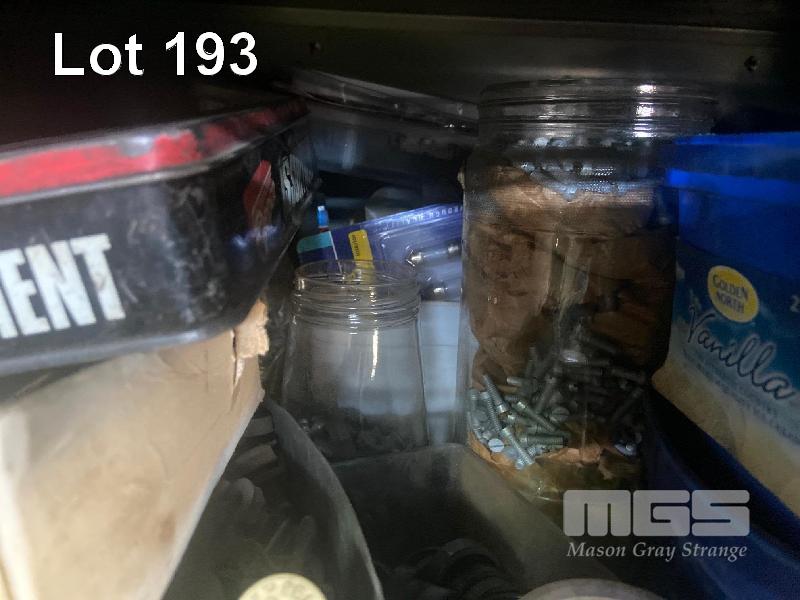 HARDWARE, SCREWS, METAL THREADS, NUTS, BOLTS, ETC, CONTENTS TOP SHELF