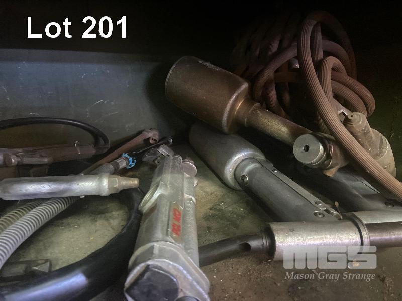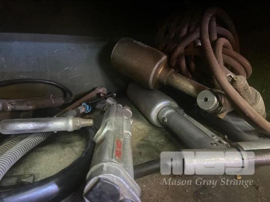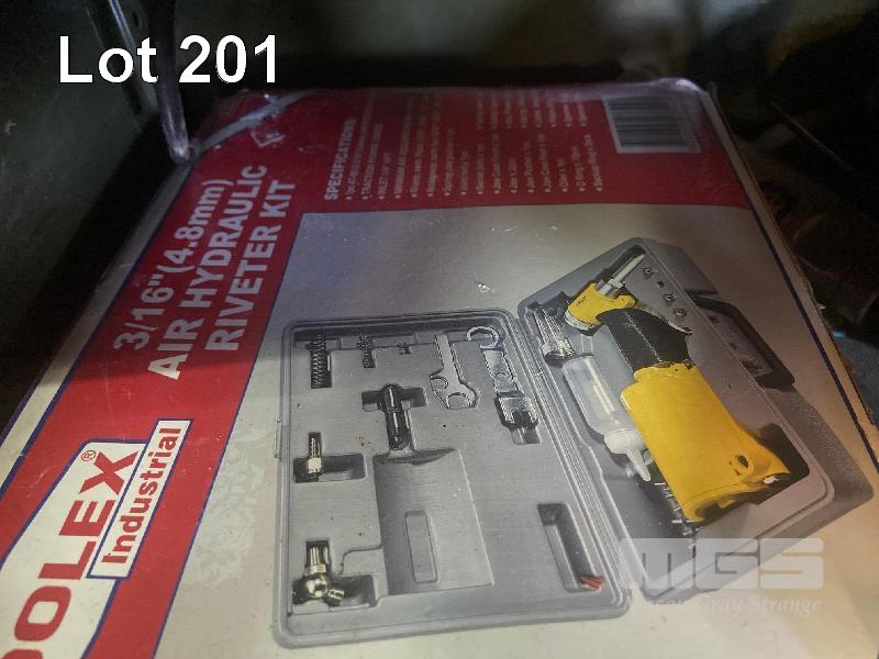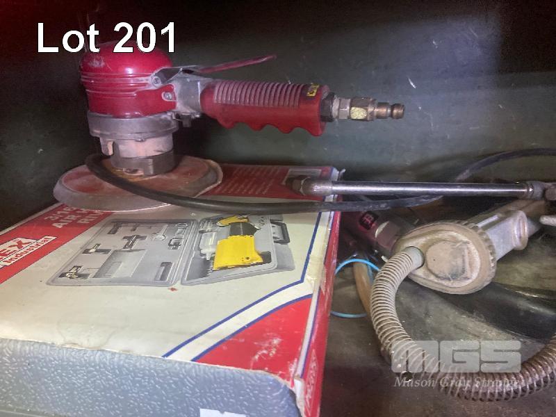 PNEUMATIC TOOLS INCLUDING AIR RIVET KIT, SANDER, RIVET GUNS, 2 x TYRE INFLATION GAUGES, CONTENTS SHELF