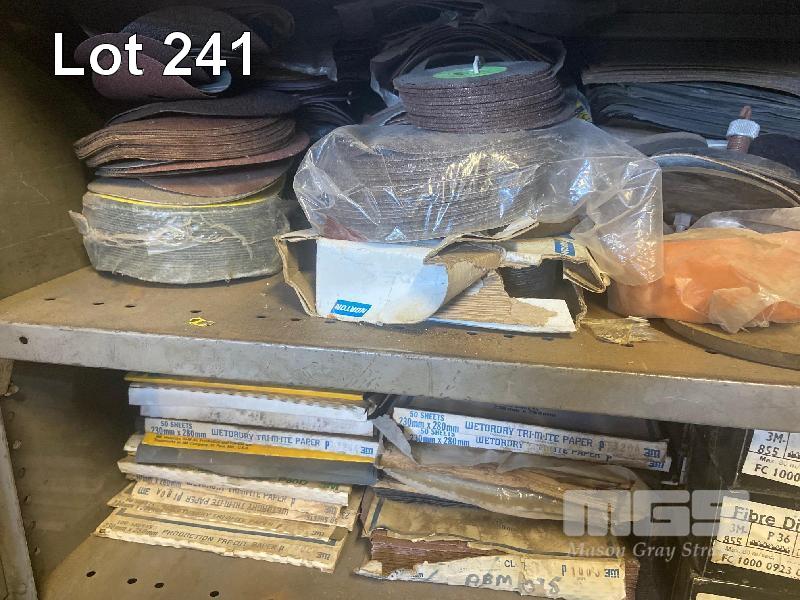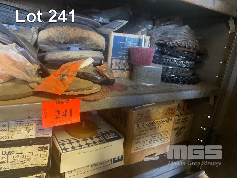 WET/DRY PAPER, SANDING DISCS, WIRE BRUSHES, FIBRE DISCS, POLISHING WHEELS CONTENTS LOWER 2 SHELVES