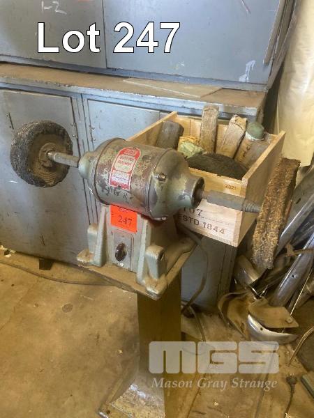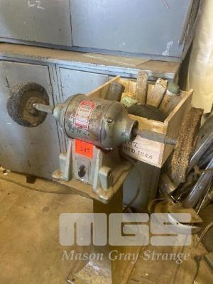 DOUBLE ENDED POLISHING BUFF, GMF 415V ON PEDESTAL WITH EXTRA WHEELS AND POLISH COMPOUNDS .