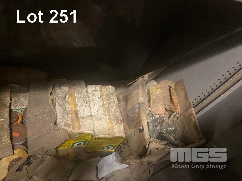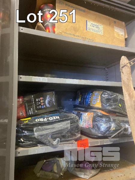 NEW SEAT COVERS,LIGHT GLOBES IN CARTONS. ETC, CONTENTS CUPBOARD
