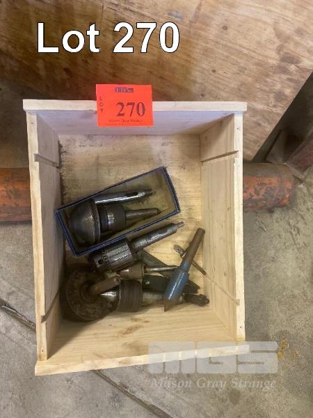 ASSORTED LATHE ACCESSORIES, DRILL CHUCK, 4 LIVE CENTRES, REDUCING SLEEVE 3-2