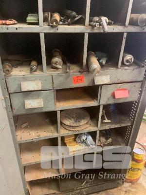 STEEL SHELF UNIT & CONTENTS 15 (APPROX) x GREASE GUNS