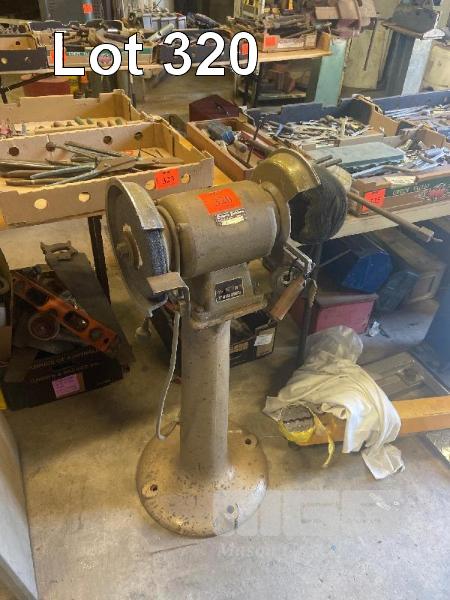 DOUBLE ENDED GRINDER, CROMPTON PARKINSON 8" WITH BUFFING SPINDLE & STAND 240 VOLT
