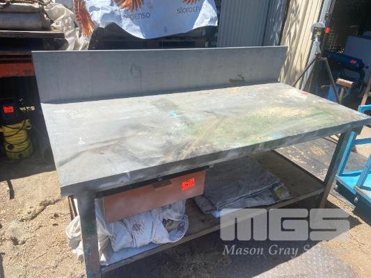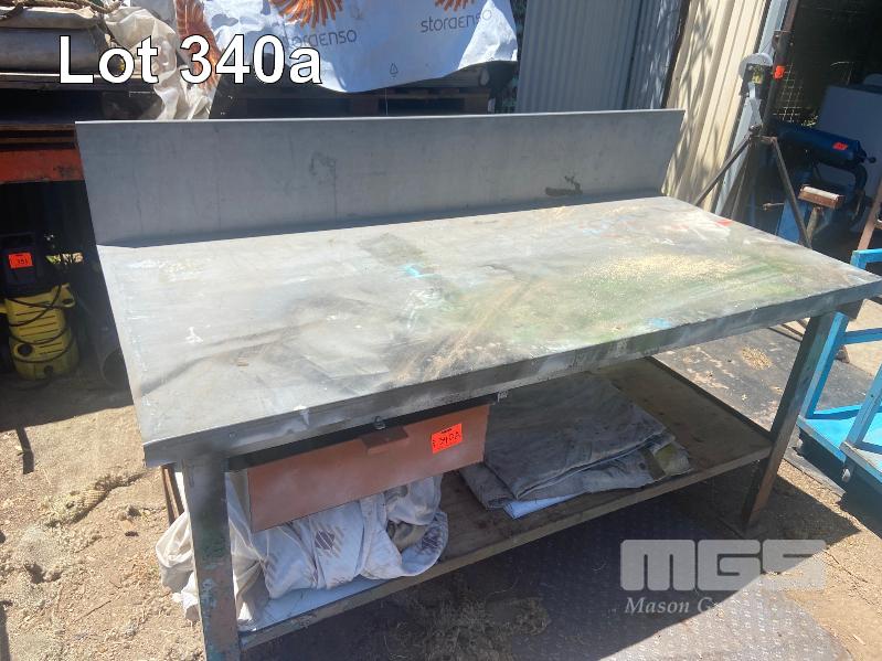 STEEL WORKBENCH, TIMBER TOP, STEEL SHEET TOP