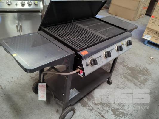 GASMATE VEGA MOBILE 3-BURNER COVERED GAS BBQ ON 2-DOOR CABINET TROLLEY