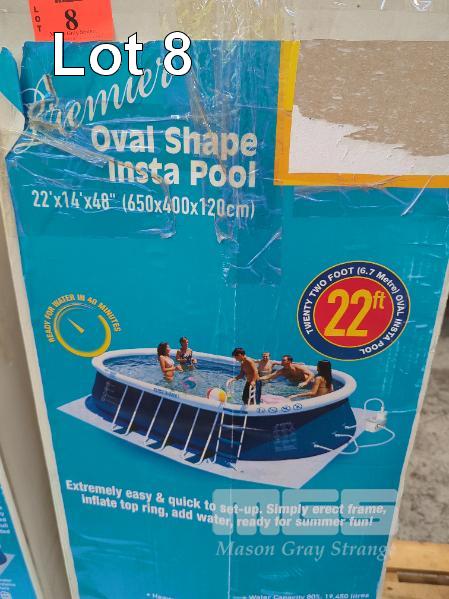 CLARK RUBBER EXTERNAL FRAME 6.7 M PORTABLE SWIMMING POOL DIMENSIONS 6.5 X 4.0 X 1.2 M (W D H), 19,450 L CAPACITY. INCLUDES FILTER PUMP, POOL COVER, GROUND SHEET, STEP LADDER, CLEANING EXTENSION POLE WITH VACUUM & SKIMMER HEADS. NEW IN BOX (2 X BOXES)