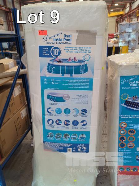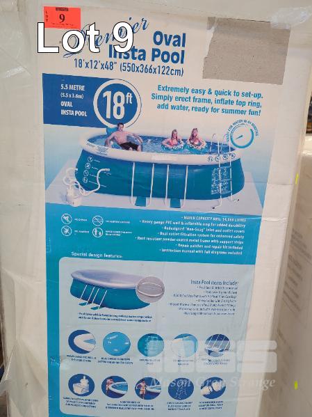 EXTERNAL FRAME 5.5 M PORTABLE SWIMMING POOL DIMENSIONS 5.5 X 3.66 X 1.22 M (W D H), 14,080 L CAPACITY. INCLUDES FILTER PUMP, POOL COVER, GROUND SHEET, STEP LADDER, CLEANING EXTENSION POLE WITH VACUUM & SKIMMER HEADS. NEW IN BOX (2 X BOXES)