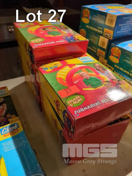 7 X WIGGLES BIG RED SUBMARINE SHADED INFLATABLE KIDS SPLASH POOLS. (NEW).