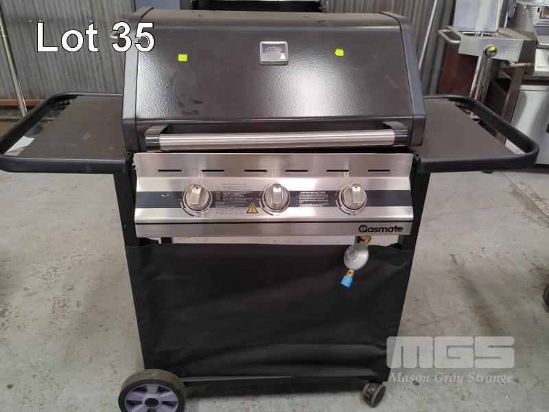 GASMATE VEGA MOBILE 3-BURNER COVERED GAS BBQ ON 2-DOOR CABINET TROLLEY