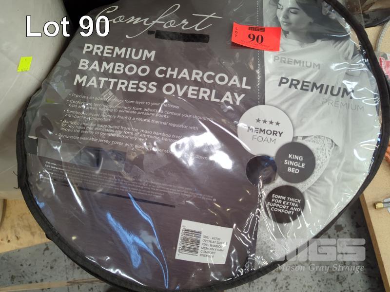 1 X KING SINGLE BED COMFORT PREMIUM BAMBOO CHARCOAL MATTRESS OVERLAY (NEW).