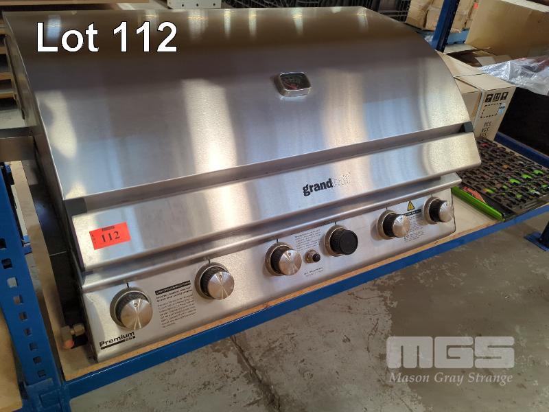 GRANDHALL PREMIUM 6S BUILT-IN STAINLESS STEEL COVERED GAS BBQ WITH ROTISSERIE KIT. FEATURES STAINLESS STEEL HOOD WITH 6-BURNERS AND ELECTRONIC IGNITION. ** EX DISPLAY UNIT - ASSEMBLED ** ORP $999