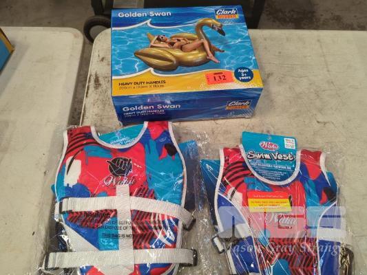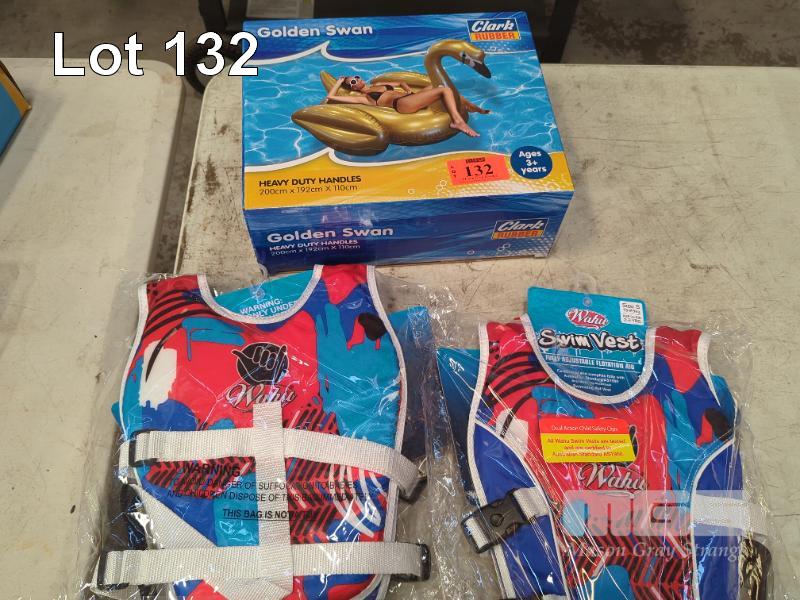 LARGE GOLDEN SWAN INFLATABLE RIDE-ON WATER PLAY TOY.