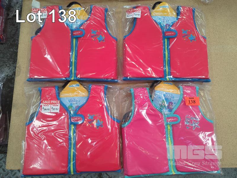 4 X SPEEDO "SEA SQUAD" CHILDREN'S FLOAT VESTS (61 CM CHEST / 4-6 YRS).