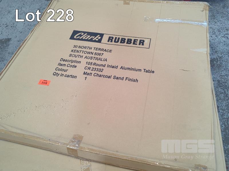 CLARK RUBBER ROUND INLAID ALUMINIUM OUTDOOR TABLE.