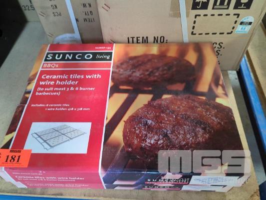 2 X PACKS SUNCO BBQ CERAMIC TILES WITH WIRE HOLDER 418 X 318 MM.