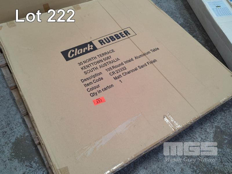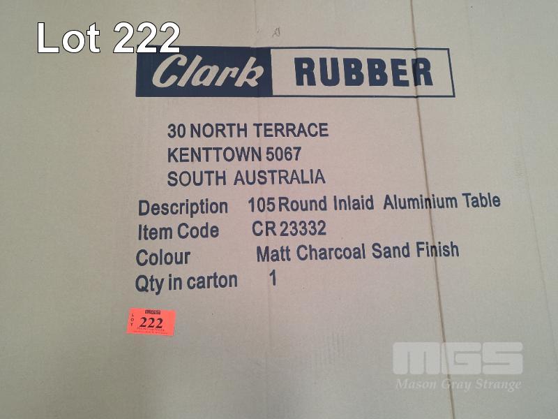 CLARK RUBBER ROUND INLAID ALUMINIUM OUTDOOR TABLE.