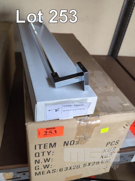 10 X WALL MOUNT SINGLE TOWEL RAILS, CHROME, WITH FITTINGS, NEW IN BOX.
