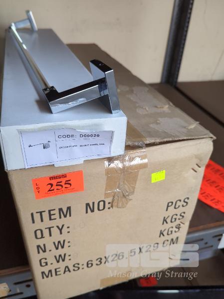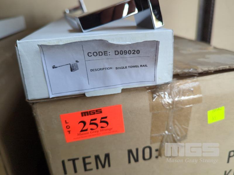 10 X WALL MOUNT SINGLE TOWEL RAILS, CHROME, WITH FITTINGS, NEW IN BOX.