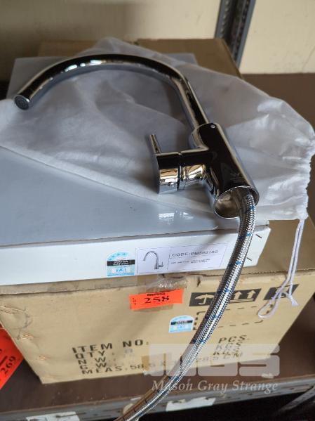 8 X CHROME MIXER TAPS WITH CURVED SPOUT.