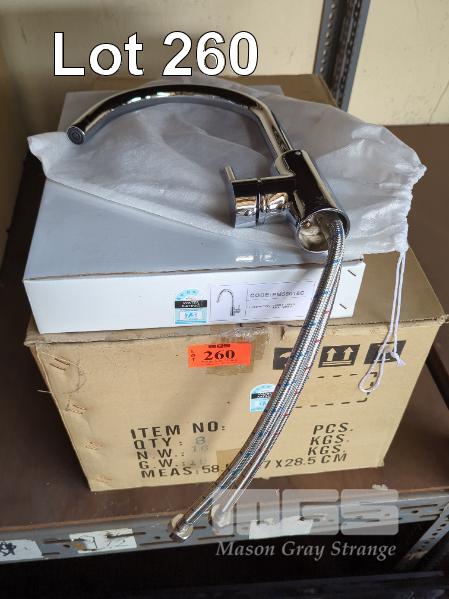 8 X CHROME MIXER TAPS WITH CURVED SPOUT.