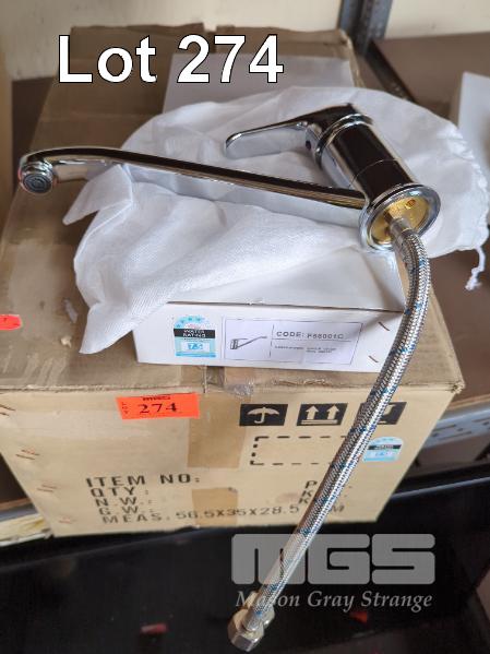 12 X CHROME SINGLE LEVER SINK MIXER TAPS, STRAIGHT SPOUT. NEW IN BOX.