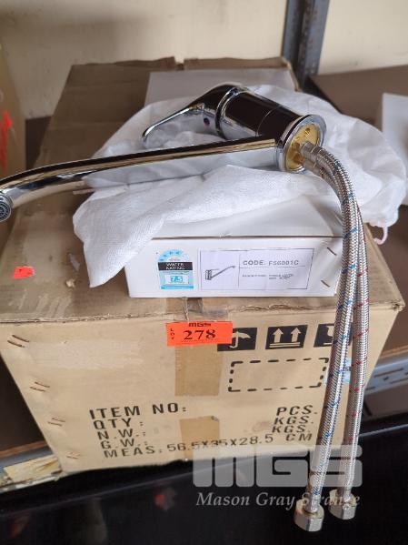 12 X CHROME SINGLE LEVER SINK MIXER TAPS, STRAIGHT SPOUT. NEW IN BOX.