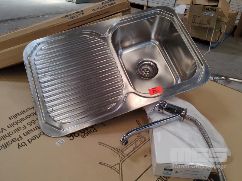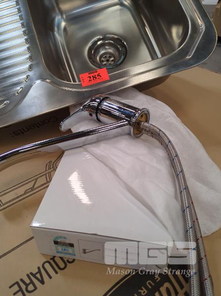 SINK & MIXER COMBO. SINGLE BASIN STAINLESS STEEL SINK AND CHROME SINGLE LEVER SINK MIXER TAP, STRAIGHT SPOUT. ALL NEW.