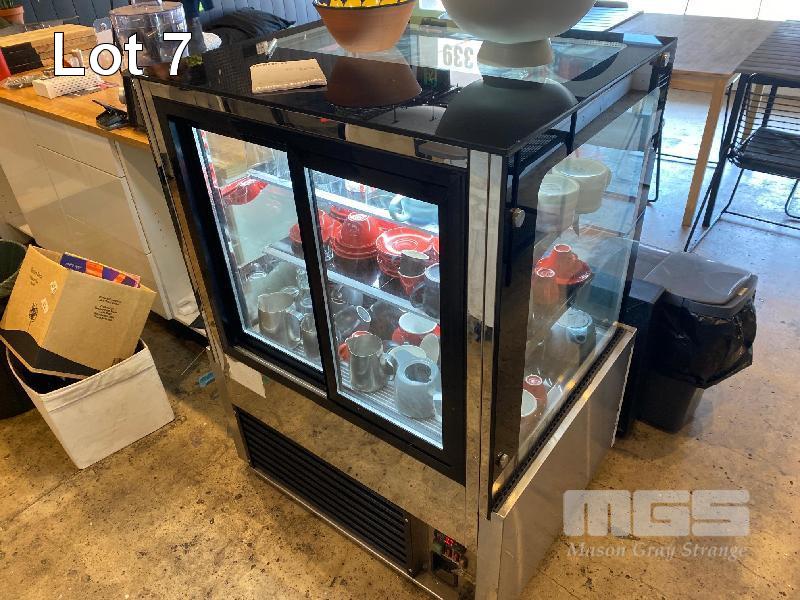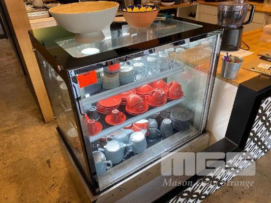 GLASS CAKE DISPLAY FRIDGE, 850 x 670 x 1200mm, SLIDING DOORS, STAINLESS STEEL BASE, ILLUMINATED, DIGITAL DISPLAY, 240v